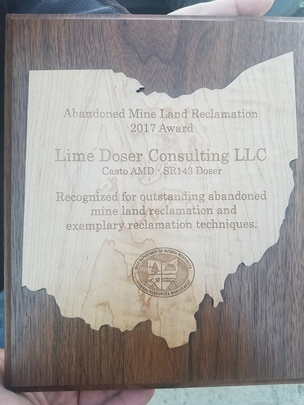 Sodimate through Lime Doser Consulting LLC, has won an award from the Ohio Department of Natural Resources